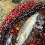 ガッツポーズして喜んでいたらランディングネットから飛び跳ねてリリース、、